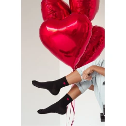 Roztomilé dámské ponožky v černé barvě s jemným motivem malého srdíčka. Jsou měkké, pohodlné a prodyšné, ideální pro každodenní nošení doma i venku.