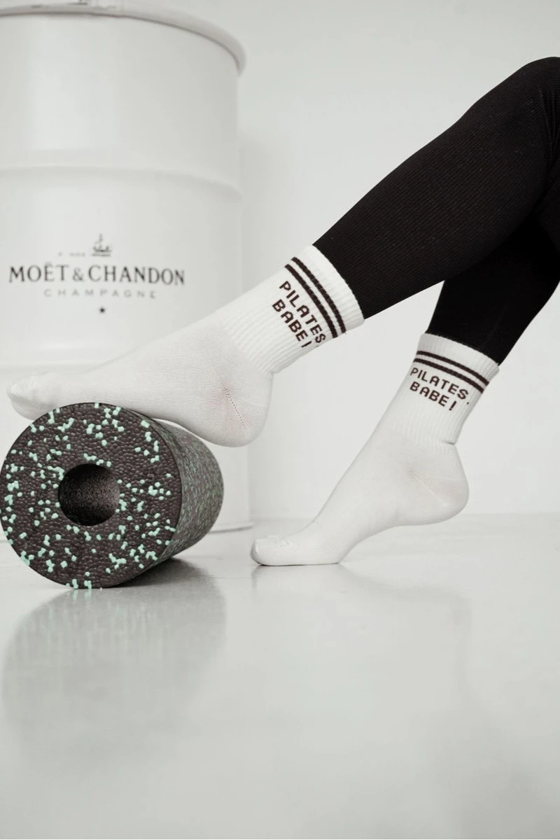 Dámské ponožky s hnědým nápisem PILATES BABE Ecru