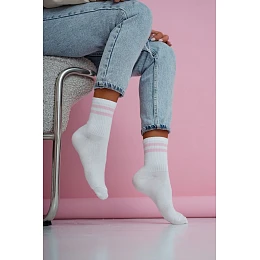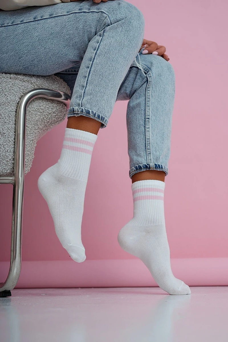Dámské Ponožky Tenké Pruhy Bílá-Růžové