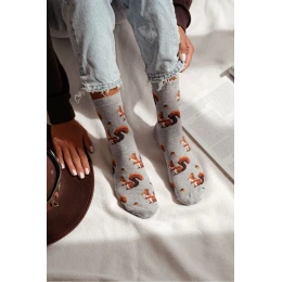 Dodaj uroku swoim codziennym stylizacjom dzięki damskim skarpetkom MILENA Wiewiórka i orzechy 0200.185! Ten uroczy model z nadrukiem wiewiórek i orzeszków przyciąga uwagę i wywołuje uśmiech. Wysoka zawartość naturalnej bawełny zapewnia miękkość i przewiewność, a domieszka elastanu i poliamidu gwarantuje idealne dopasowanie i trwałość. To doskonały wybór na co dzień – zarówno do domu, jak i do pracy czy szkoły. Damskie skarpetki MILENA to połączenie komfortu, jakości i oryginalnego designu.