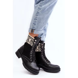 Módní dámské boty vyrobené z kombinace eko kůže a látky. Osazené na plochém podpatku a platformě. Model šněrování. Horní část ve formě ponožky. Špička je zaoblená. Špička na tomto obuvi je zesílená. Ideální pro podzimní stylizace! Při výběru velikosti se řiďte tabulkou velikostí.