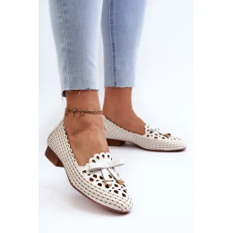 Dámské prolamované balerínky s mašlí, bílá Nestavia