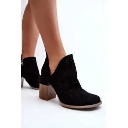 Dámské kotníkové boty vyrobené z eko semiše. Svršek je zdoben prolamovaným vzorem a výřezem. Zapínání na zip. Zaoblené prsty. Masivní podpatek v podobě širokého sloupku zajistí stabilitu na každém kroku. Tento model má navíc vyztuženou patu. Ideální ke kalhotám a šatům! Při výběru velikosti se řiďte tabulkou velikostí.
