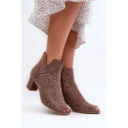 Dámské prolamované eko semišové boty na vysokém podpatku s otevřenou špičkou Hnědá Halania