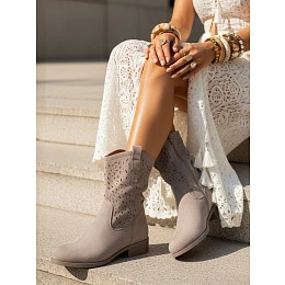 Dámské prolamované kozačky na nízkém podpatku béžové FashionStreet ZY1433