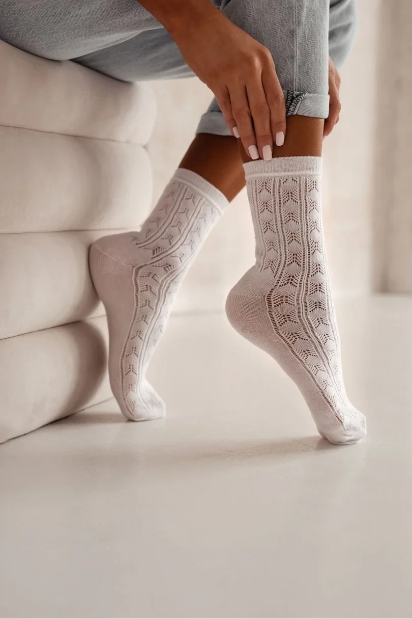 Jemné, ženské a mimořádně stylové - dámské ažurové ponožky MILENA 0989.007 jsou ideální volbou na jaro a léto. Jsou vyrobené z měkké, vzdušné bavlny s jemným přídavkem elastanu a polyamidu, takže zaručují dokonalé přizpůsobení a pohodlí při nošení po celý den. Ažurový vzor jim dodává výjimečnou lehkost a romantický charakter - hodí se k elegantní i ležérní obuvi. Je to kombinace klasiky s módními detaily, kterou si zamilujete od prvního okamžiku, kdy si je obujete.