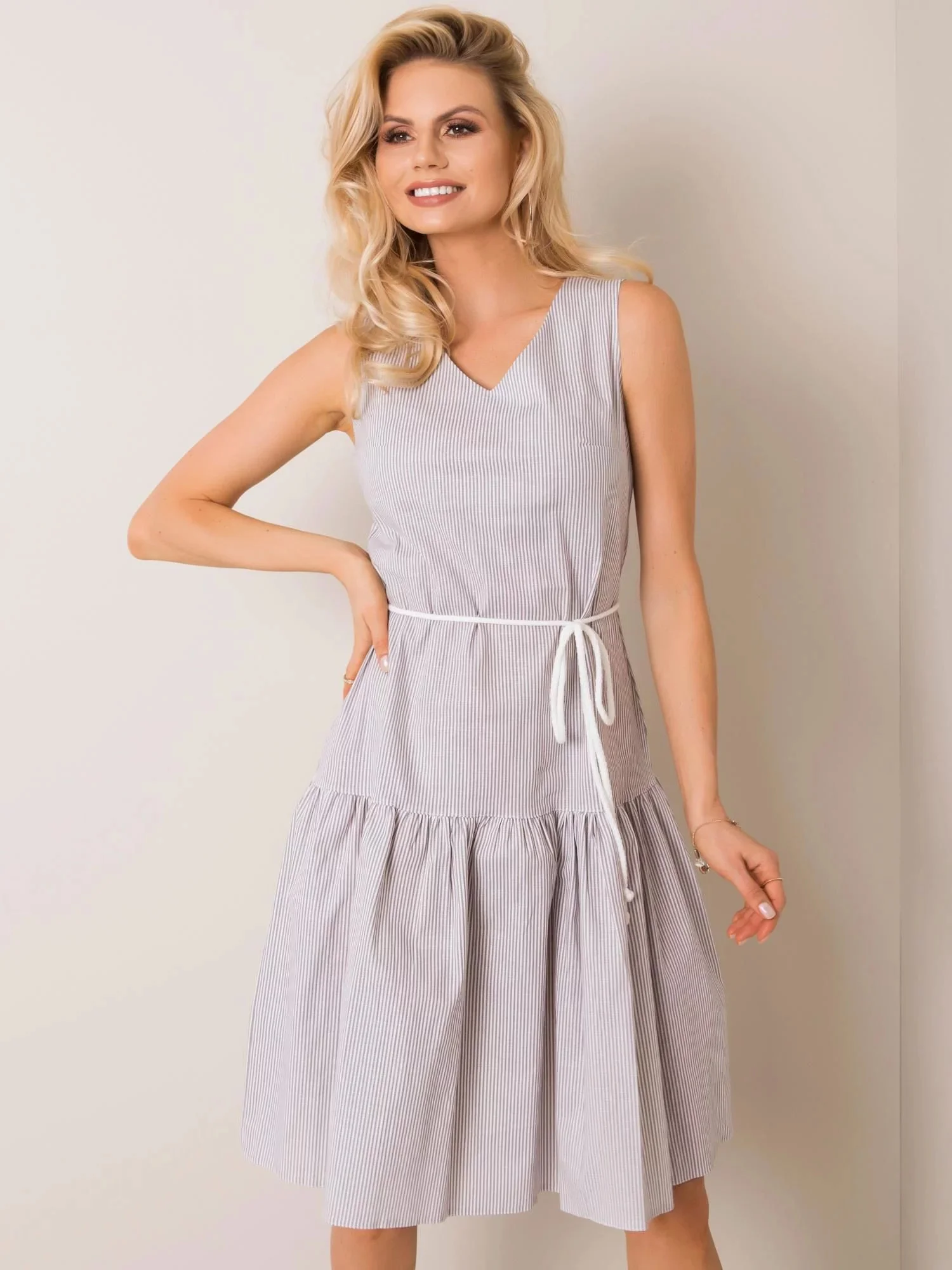 Dámské proužek šaty LK SK-508215.30P bílá šedá - FPrice
