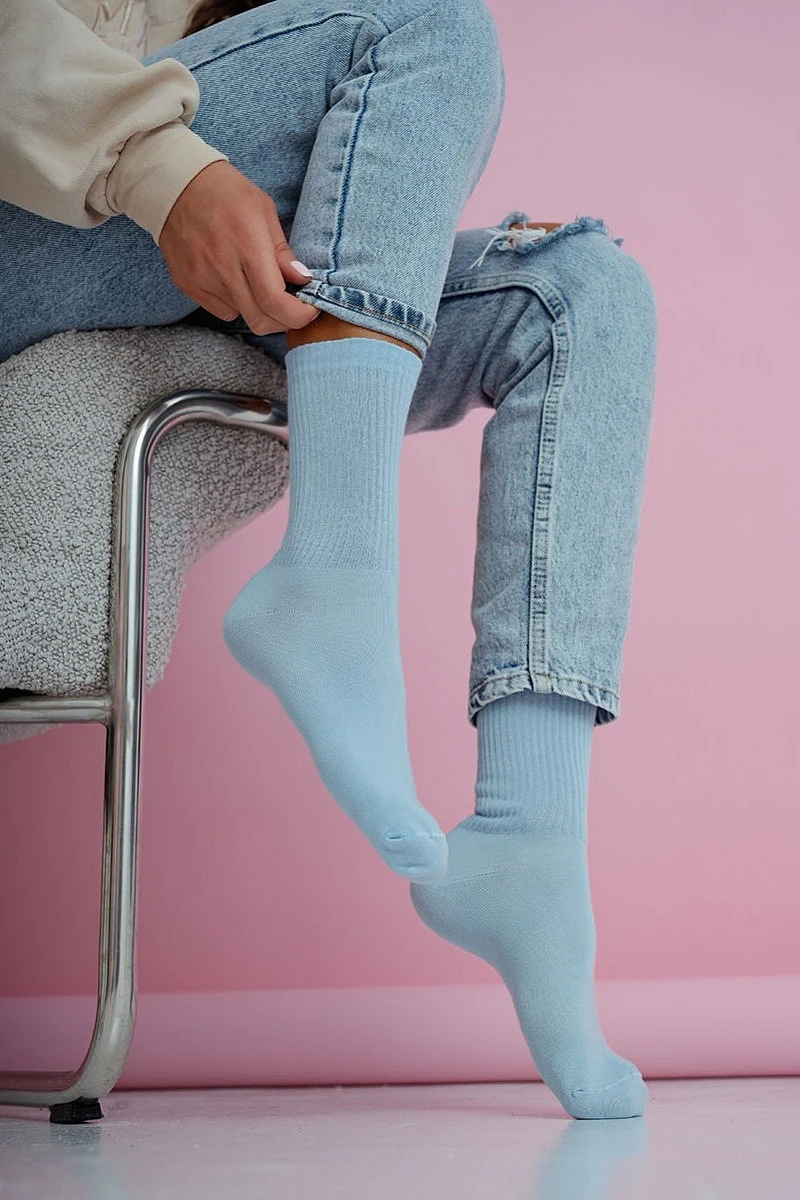 Dámské pruhované ponožky v pastelově modré