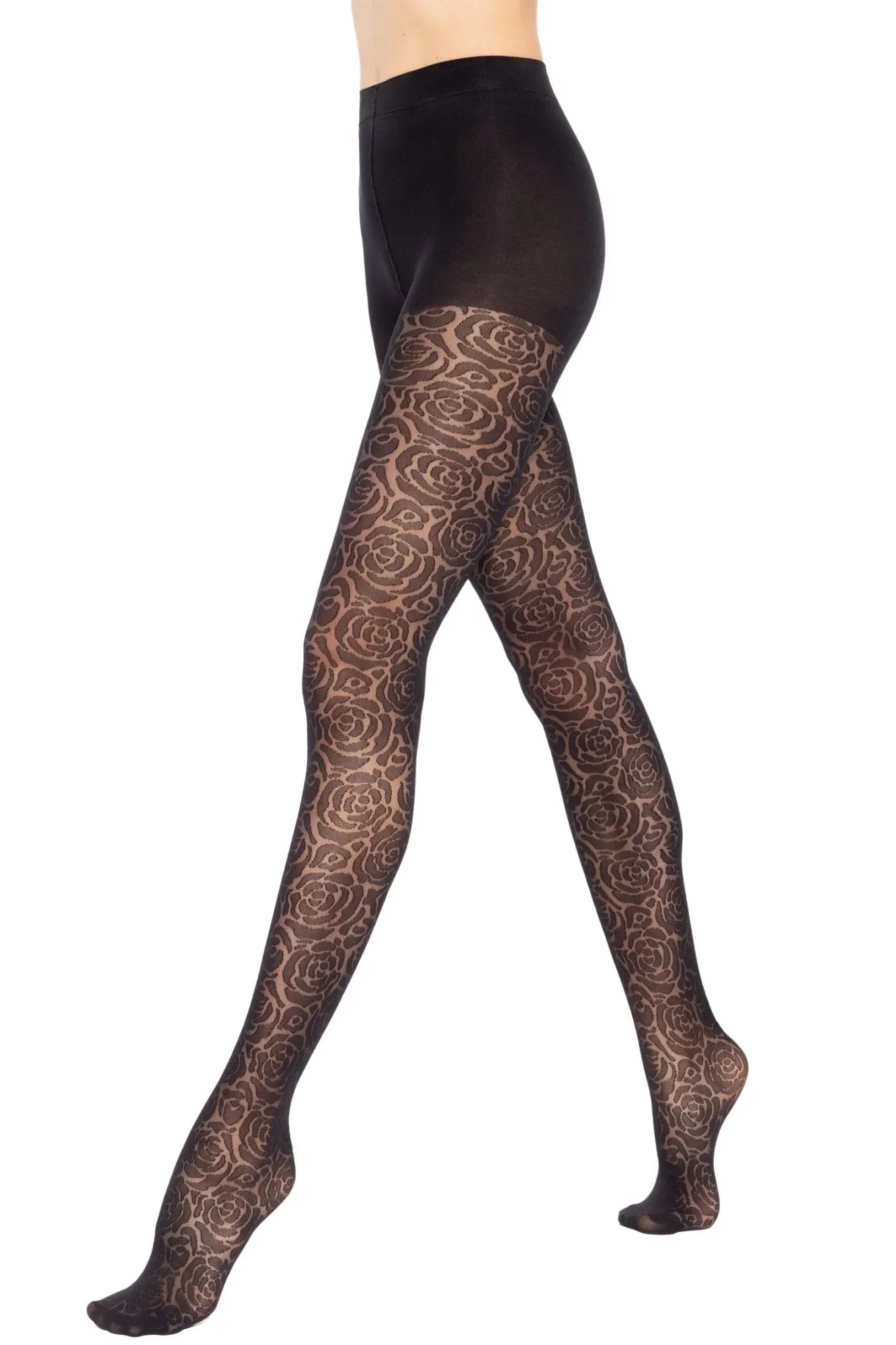 Dámské punčocháče 04 Floral GATTA - černá barva - z elastanové příze - vzorované - mat - 30 DEN