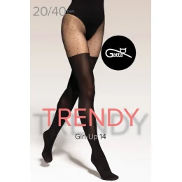 Podtrhněte svůj styl elegantními punčochovými kalhotami Gatta Girl Up 14 z kolekce Trendy! Tyto vzorované punčochové kalhoty 20/40 DEN kombinují klasickou černou barvu s módním designem – hladká spodní část – a průhledná, puntíky zdobená góra je dokonalou kombinací ženskosti a modernosti. Díky obsahu elastanu se dokonale přizpůsobí tělu a zajistí tak pohodlí při celodenním nošení. Budou se hodit k elegantním outfitům i ke každodennímu nošení a dodají charakter každému oblečení.