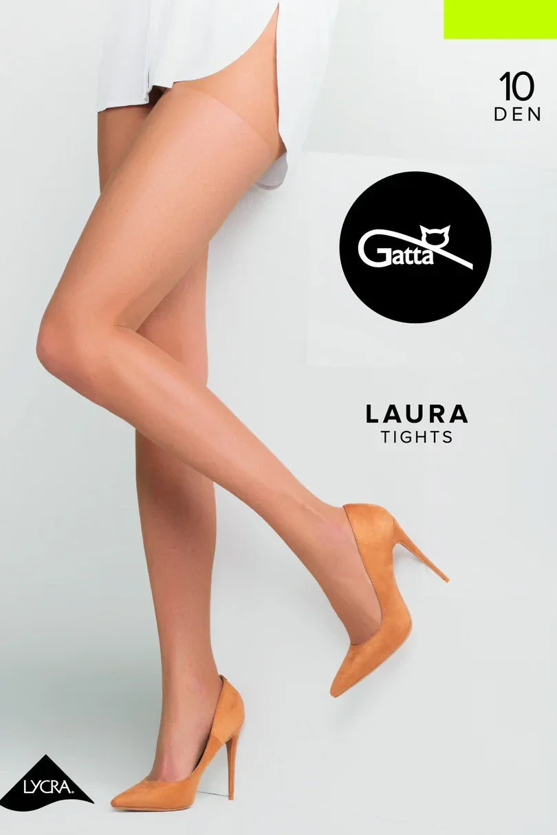 Neobyčejně tenké (10 DEN) dámské punčochové kalhoty Laura, které jsou vyrobené z příze s přídavkem Lycry.