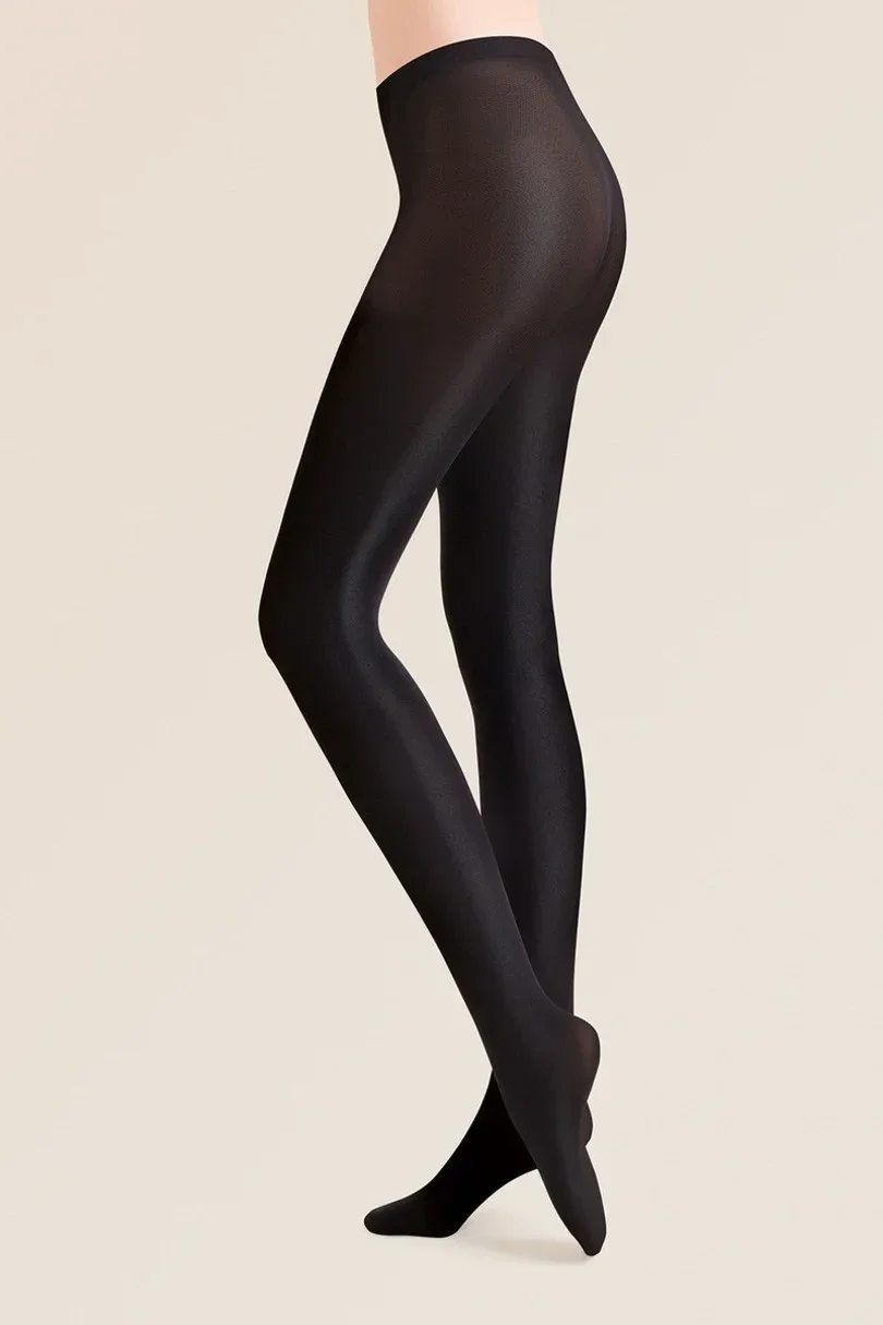 Punčocháče jsou vyrobené z 3D mikrovlákna s přídavkem lesklé příze, která modelu dodává efekt saténového lesku.