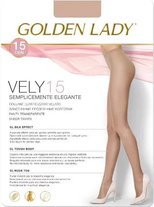 Hladké punčochové kalhoty Golden Lady | Vely 15 den ušité z lycry, polomatné. Mají zesílený sed.