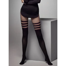 Model imituje punčochy. Vrchní část nohy zdobí síťovina typu "kabaretka" s velkými očky. Model má bavlněný klín.