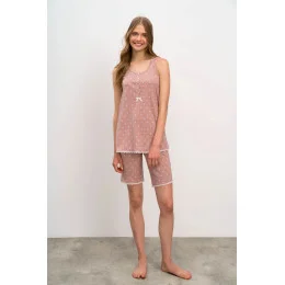Dvoudílné dámské pyžamo pro pohodlný spánek. Pyžamo je vyrobené z vysoce kvalitní, genetický nemodifikované řecké bavlny, která poskytuje vysoké pohodlí, příjemný pocit na dotek, prodyšnost, pružnost a odolnost.