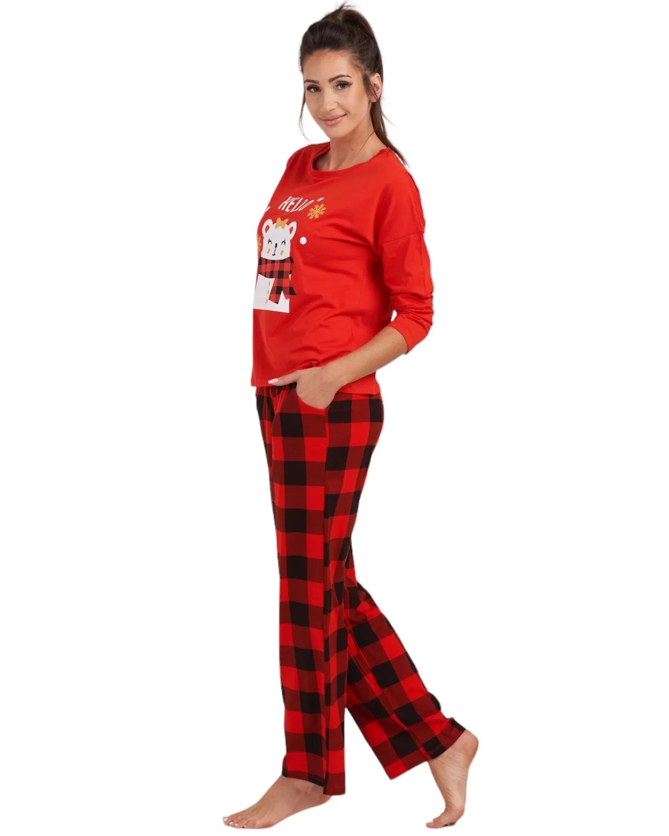 Dámské pyžamo 165/031 červená s medvídkem - Karol
