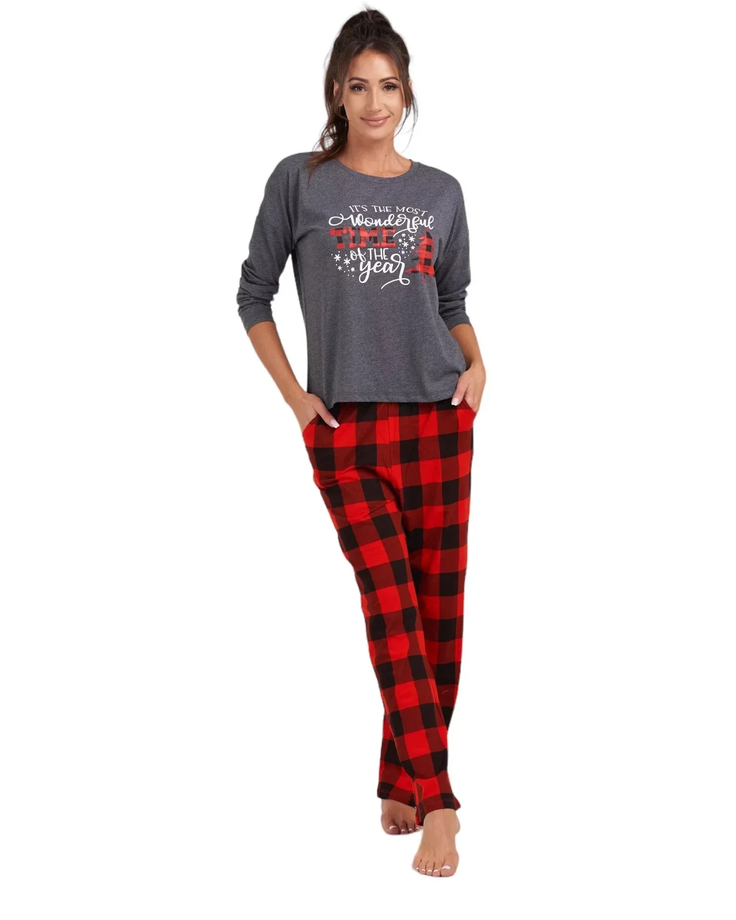 Dámské pyžamo 165/051 šedá vzor vánoce - Karol