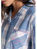 Dámské pyžamo od značky Muydemi. Vrchní díl pyžama má krátký rukáv, kulatý výstřih a veselý potisk. Šortky jsou jednobarevné, po stranách mají kapsy a v pase mají šňůrku na stáhnutí. Pyžamo je ušité z lehkého příjemného materiálu.