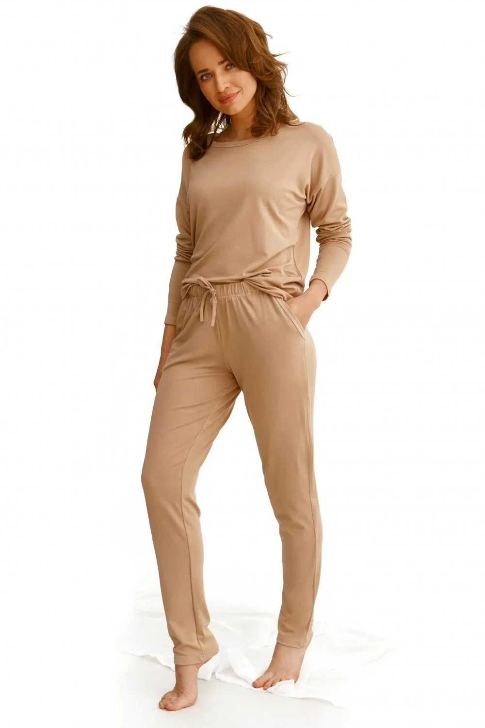 Dámské pyžamo 2578 Emily TARO - materiál je velmi příjemný na dotek - béžové tričko s dlouhými rukávy - dlouhé kalhoty mají v pase gumu - pyžamo je vhodné i na denní nošení