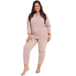 Dámské pyžamo 3006 Gabrielle Taro - vyrobené z vysoce kvalitní a měkké bavlny - béžové tričko s dlouhými rukávy - ozdobené na přední straně potiskem - vzorované kalhoty