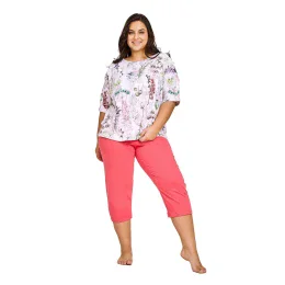 Dámské pyžamo 3156 Olive plus TARO - bílá barva - z vysoce jakostní bavlny - tričko je bílé barvy s krátkými rukávy - zdobené květinovým vzorem - jednobarevné kalhoty