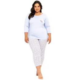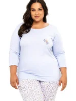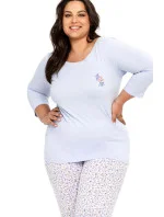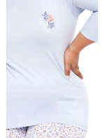 Dámské pyžamo 3256 Ariella blue TARO - z vysoce jakostní bavlny - tričko světle modré barvy s tříčtvrtečními rukávy - na přední straně zdobené potiskem - vzorované kalhoty