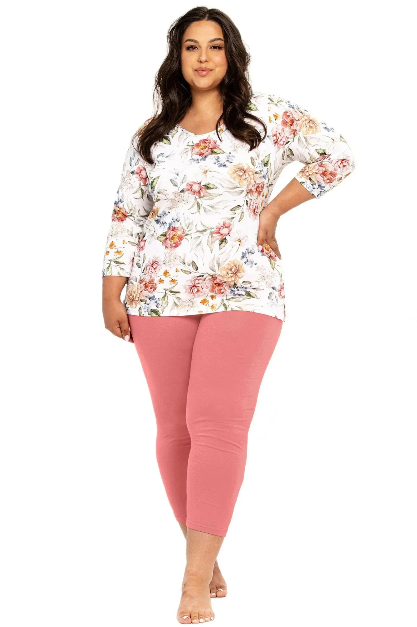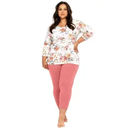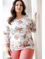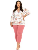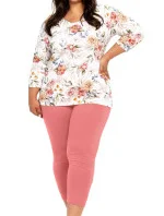 Dámské pyžamo 3262 Louisa TARO - bílá barva - z vysoce jakostní bavlny - tričko bílé barvy s tříčtvrtečními rukávy - ozdobené květinovým potiskem - jednobarevné kalhoty