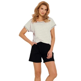Dámské pyžamo 3353 Ayla TARO - z vysoce jakostní bavlny - tričko růžové barvy s krátkými rukávy - zdobené černými puntíky - černé kraťasy s kapsami