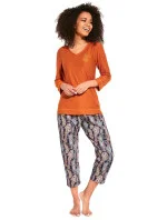Dámské pyžamo s 3/4 rukávy, z pevné bavlny, s výstřihem do V, k sadě vzorované kalhoty 3/4. Baleno v krabici.