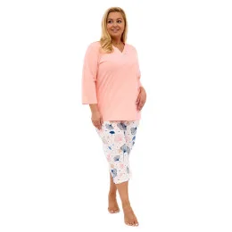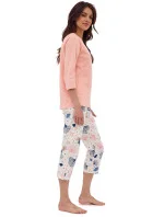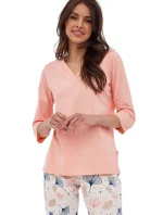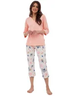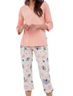 Dámské pyžamo 389/389 Nina plus CORNETTE - růžová barva - z vysoce jakostní bavlny - růžové tričko s tříčtvrtečními rukávy - se vzorem - vzorované kalhoty - v pase guma - pyžamo je vhodné i na denní nošení