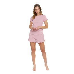 Dámské pyžamo 4315 papaya Doctornap - z velmi kvalitní a příjemné žebrované bavlny - světle fialové tričko s krátkými rukávy - jednobarevné kraťasy s kapsami - lemování ozdobnými volánky - certifikát OEKO-TEX Standard 100