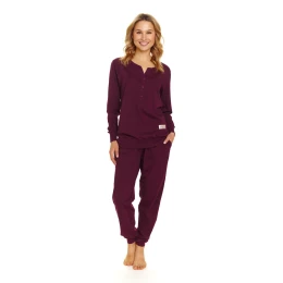 Dámské pyžamo 4349 Doctornap - z vysoce jakostní bavlny - vínové tričko s dlouhými rukávy - výstřih se zapínáním na knoflíky - dlouhé kalhoty vínové barvy s kapsami -rukávy a nohavice zakončené lemem - certifikát OEKO-TEX Standard 100