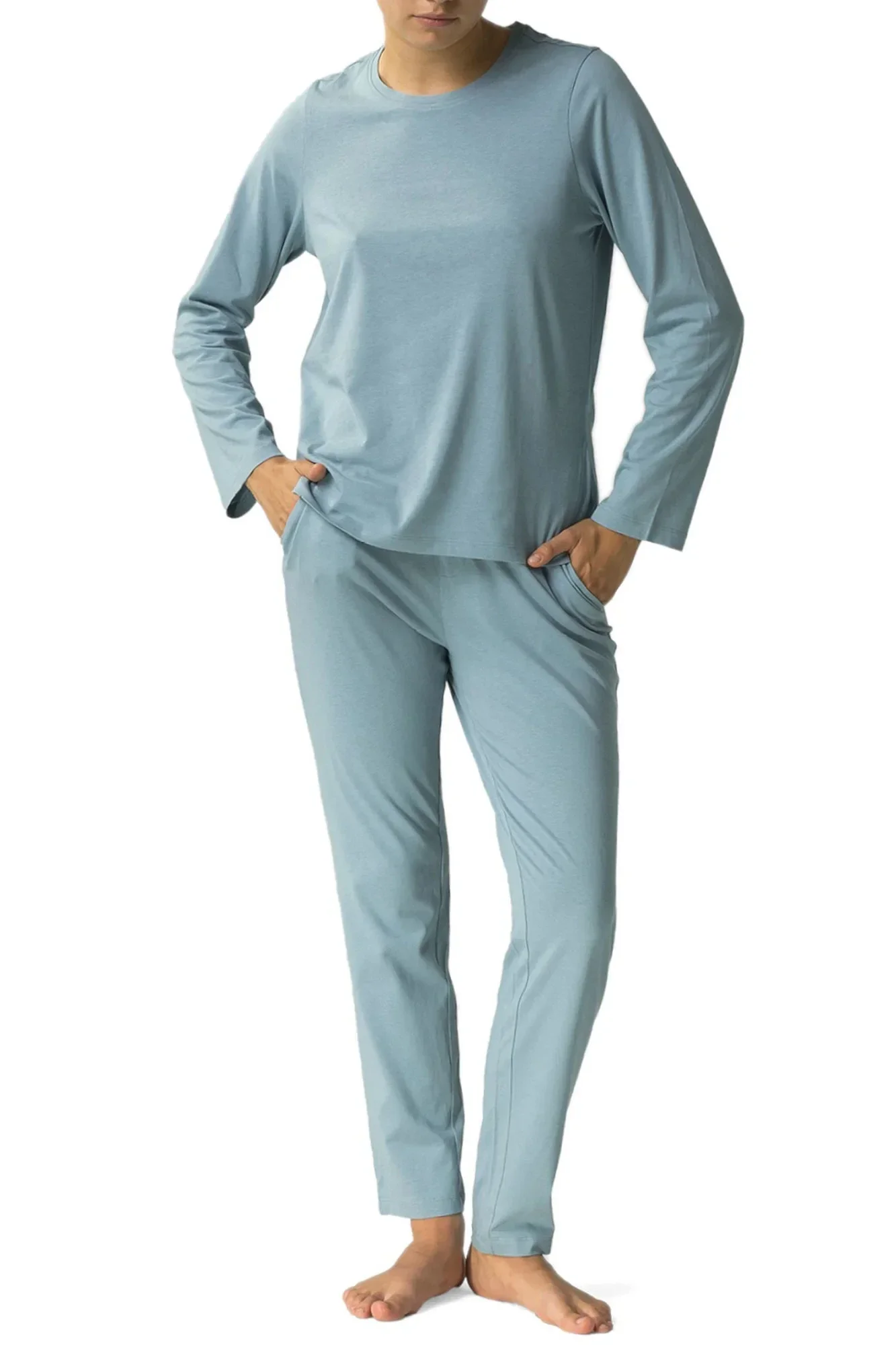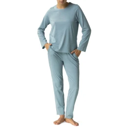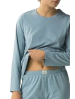Dámské pyžamo 479 turquise Atlantic - z vysoce jakostní bavlny - modré tričko s dlouhými rukávy - dlouhé kalhoty s kapsami - neodnímatelné knoflíky - nastavitelná šňůrka v pase