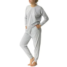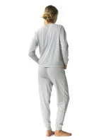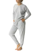 Dámské pyžamo 490/02 grey Atlantic - z vysoce jakostní bavlny - šedé tričko s krátkými rukávy - vzorované šortky světle modré s kapsami - maximální komfort nošení - hodí se i jako domácí relaxační set