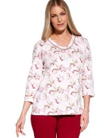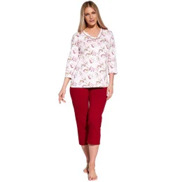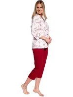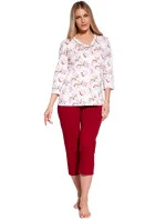 Dámské pyžamo 481/360 Adele plus CORNETTE - bavlněný materiál je poddajný a jemný na dotek - bílé tričko s tříčtvrtečními rukávy - s květinovým potiskem - jednobarevné capri kalhoty