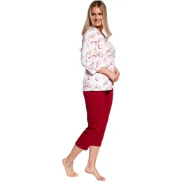 Dámské pyžamo 481/360 Adele plus CORNETTE - bavlněný materiál je poddajný a jemný na dotek - bílé tričko s tříčtvrtečními rukávy - s květinovým potiskem - jednobarevné capri kalhoty