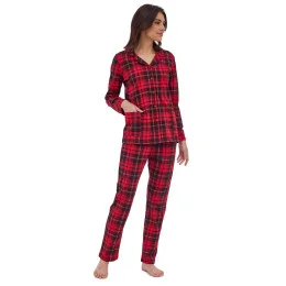 Dámské pyžamo 482/408 Kaya CORNETTE - z vysoce jakostní bavlny - vzorovaná košile s dlouhými rukávy - kapsy na bocích - zapínání na knoflíky - pohodlné vzorované dlouhé kalhoty