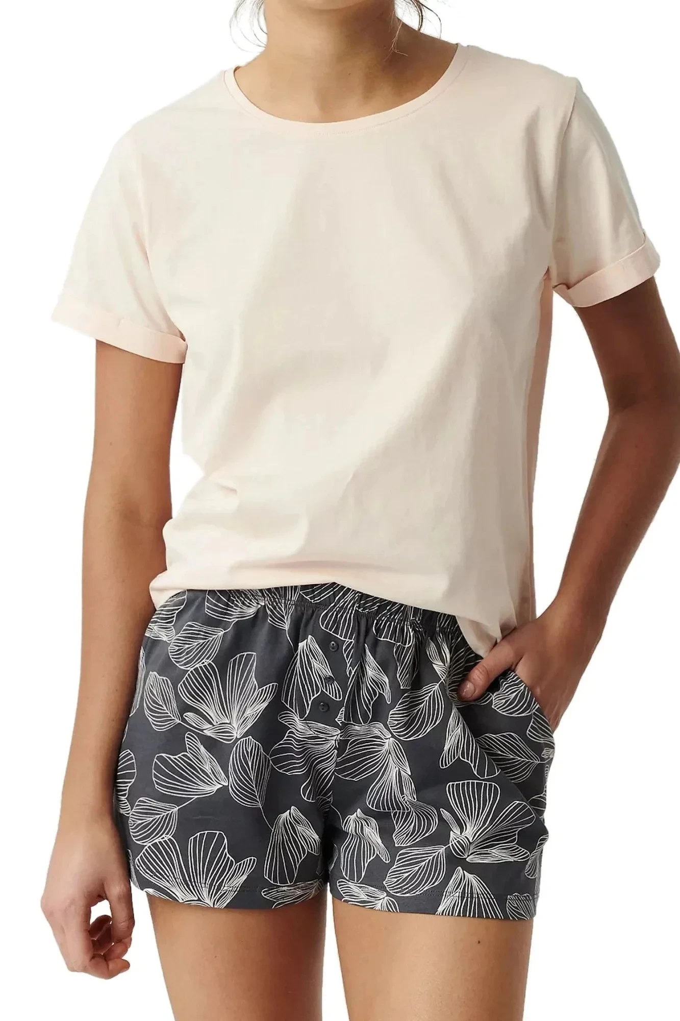 Dámské pyžamo 489 peach Atlantic - z vysoce jakostní bavlny - lososové tričko s krátkými rukávy - vzorované šortky s kapsami - široký elastický pas - prodyšná látka, která dobře odvádí vlhkost - střih zajišťující pohodlí a volnost pohybu - kvalitní bavlna příjemné na dotek a šetrná k pokožce