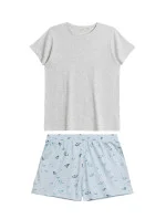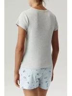 Dámské pyžamo 490/02 grey Atlantic - z vysoce jakostní bavlny - šedé tričko s krátkými rukávy - vzorované šortky světle modré s kapsami - maximální komfort nošení - hodí se i jako domácí relaxační set