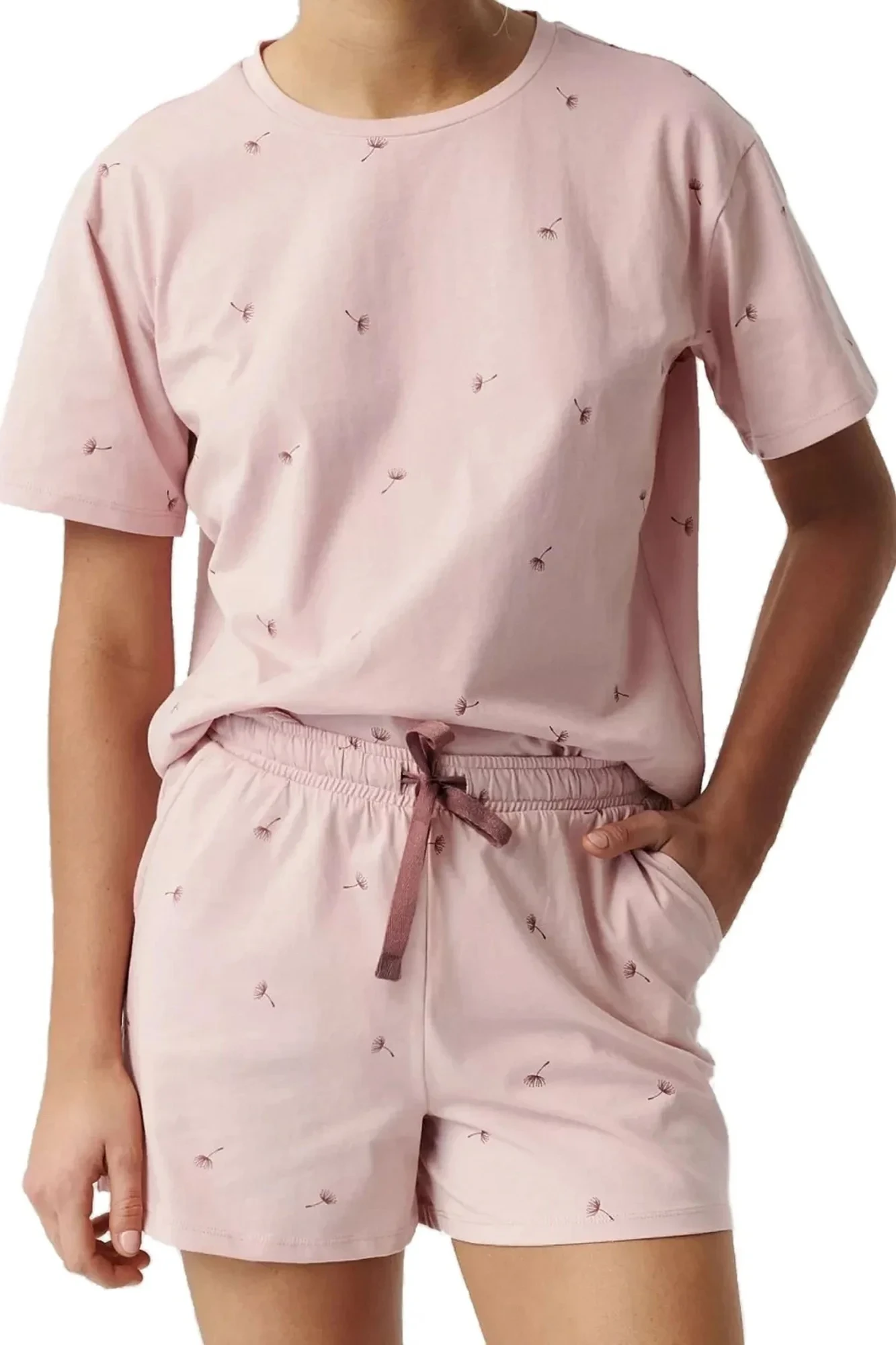 Dámské pyžamo 491 pink Atlantic - z vysoce jakostní bavlny - růžové tričko s krátkými rukávy - šortky s kapsami - s potiskem - zavazování v pase na šňůrku - prodyšná látka, která dobře odvádí vlhkost - střih zajišťující pohodlí a volnost pohybu - kvalitní bavlna příjemné na dotek a šetrná k pokožce