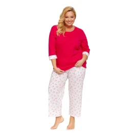 Dámské pyžamo 5279 Doctornap - z velmi kvalitní a příjemné bavlny - tmavě růžové tričko s dlouhými rukávy - kontrastní lemování manžet rukávů - dlouhé vzorované kalhoty s kapsami - certifikát OEKO-TEX Standard 100