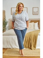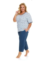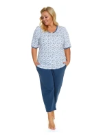 Dámské pyžamo 5290 Doctornap - z vysoce jakostní bavlny - bílé tričko s krátkými rukávy - se vzorem - kalhoty modré barvy s kapsami - výstřih a okraje rukávů zakončené modrým lemováním - certifikát OEKO-TEX Standart 100