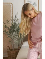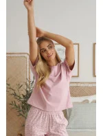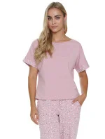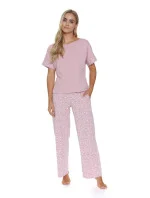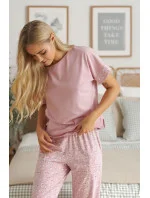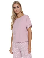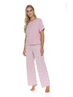 Dámské pyžamo 5324 Daisy flowers Doctornap - z vysoce jakostní bavlny - růžové tričko s krátkými rukávy - lemy rukávů ze vzorované látky - dlouhé vzorované kalhoty s kapsami - široké nohavice - certifikát OEKO-TEX Standard 100