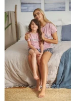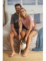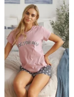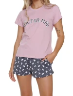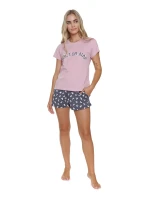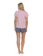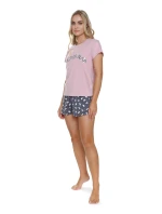 Dámské pyžamo 5347 Doctornap - z vysoce jakostní bavlny - světle fialové tričko s krátkými rukávy - na přední straně zdobené potiskem - vzorované kraťasy - certifikát OEKO-TEX Standard 100