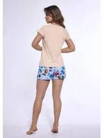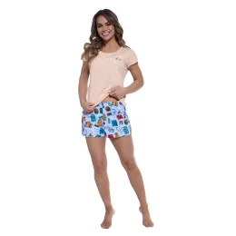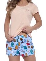 Dámské pyžamo 628/300 Travel CORNETTE - z vysoce jakostní bavlny - broskvové tričko s krátkými rukávy - ozdobené potiskem na přední straně - vzorované kraťasy - pyžamo je vhodné i na denní nošení