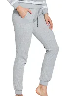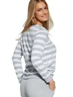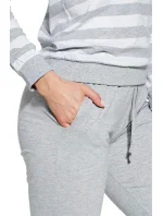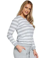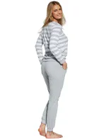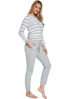 Dámské pyžamo 634/30 Molly CORNETTE - z vysoce kvalitní a na dotyk příjemné bavlny - bílo-šedé pruhované tričko s dlouhými rukávy - dlouhé šedé kalhoty s kapsami