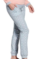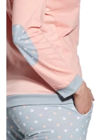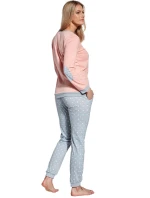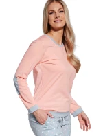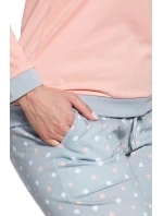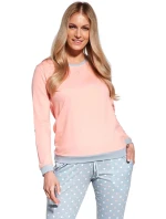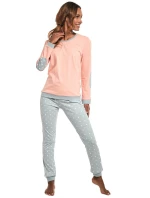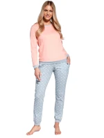 Dámské pyžamo 634/60 Meggie CORNETTE - z vysoce kvalitní a na dotyk příjemné bavlny - broskvové tričko s dlouhými rukávy - zdobené lemy - dlouhé vzorované kalhoty