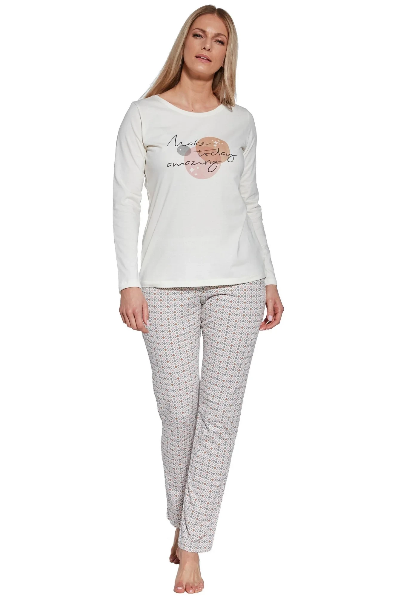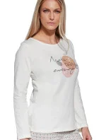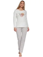 Dámské pyžamo 655/362 Today CORNETTE - z vysoce kvalitní a na dotyk příjemné bavlny - krémové tričko s dlouhými rukávy - na přední straně ozdobené potiskem - dlouhé vzorované kalhoty