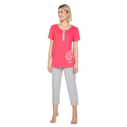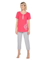 Dámské pyžamo 665 red plus REGINA - z vysoce jakostní bavlny - malinové tričko s krátkými rukávy - zapínání na knoflíky - zdobené potiskem na přední straně - pohodlné vzorované kalhoty