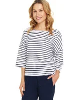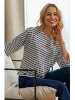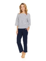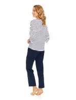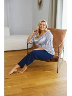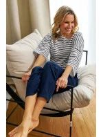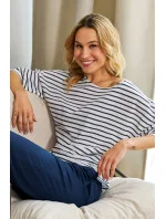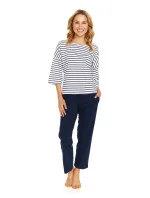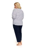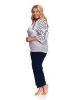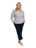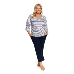 Dámské pyžamo 7122 plus Doctornap - z vysoce jakostní bavlny - bílé tričko s krátkými rukávy - s modrými pruhy - na přední straně potisk - kraťasy modré barvy s kapsami - certifikát OEKO-TEX Standard 100